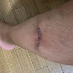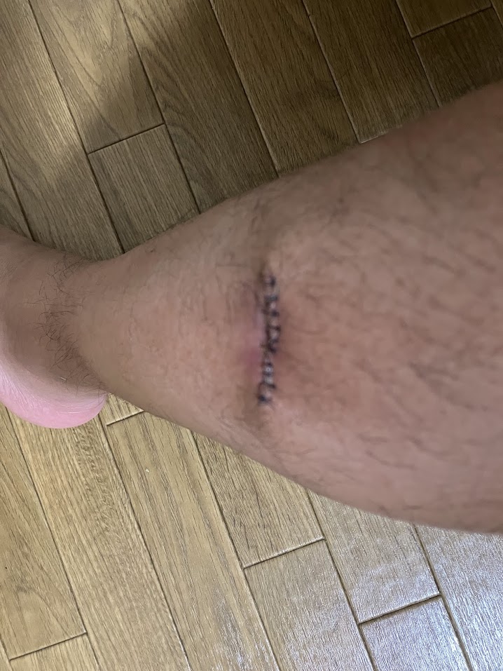 左ふくらはぎに木の芽?が足に刺さっていた事が原因